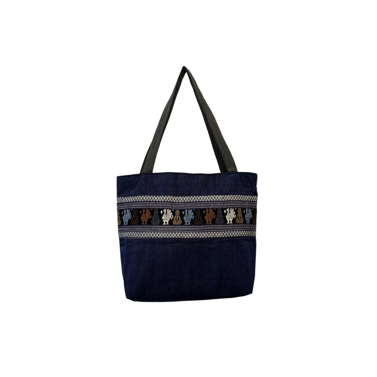 ラオスの北部山岳部に多く住むTai Lue (タイルー族) の手織り布トートバッグです。