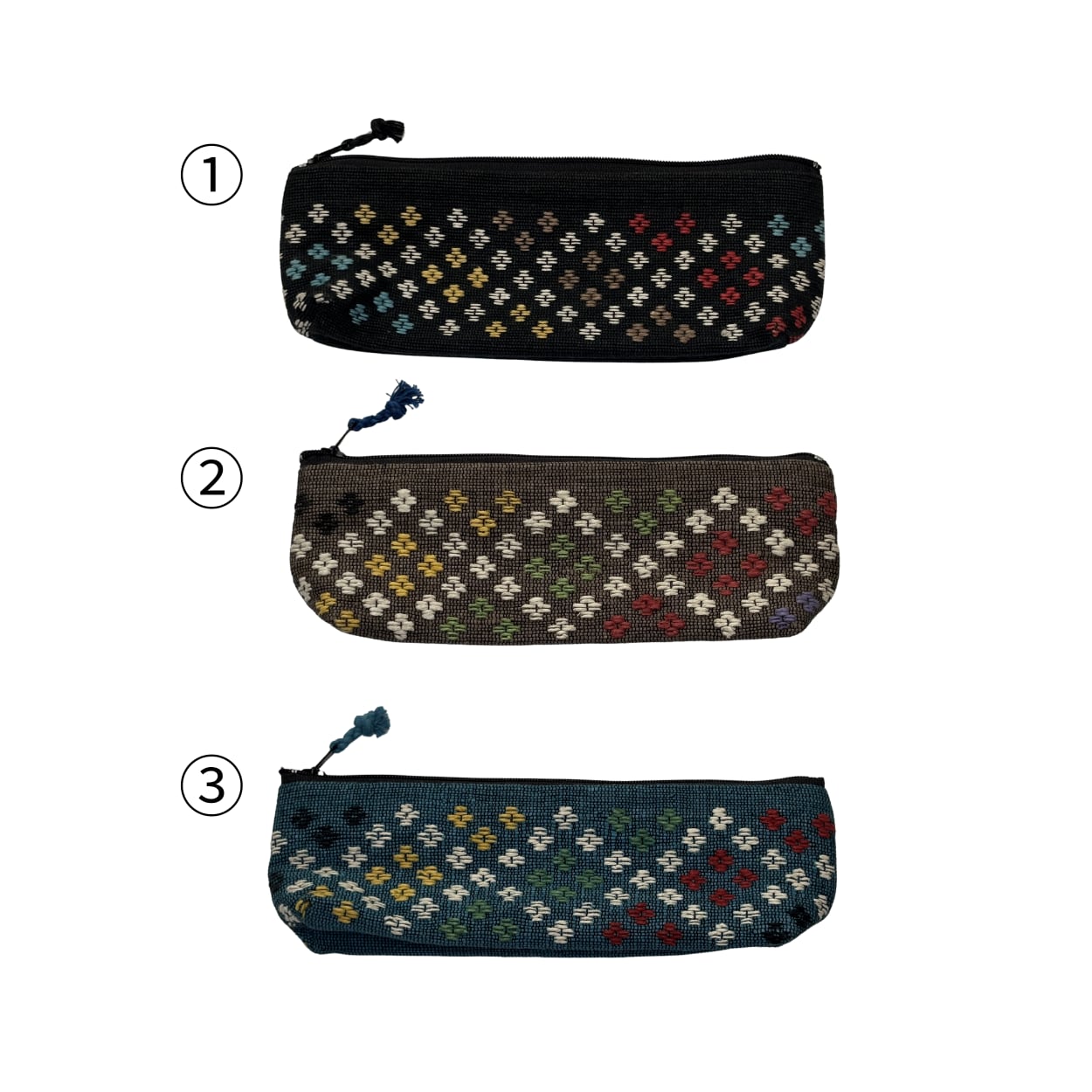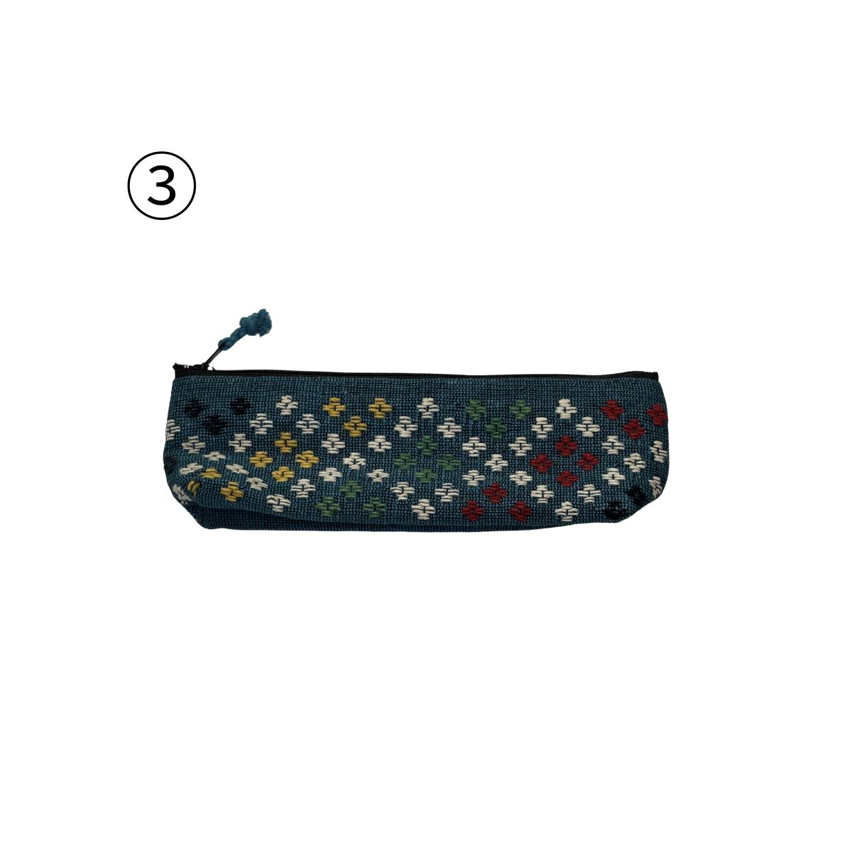 ラオスの伝統紙「サー紙」を細く裁断し、撚りをかけて紙糸にしたものを用いた、紙布織りのペンケースです。