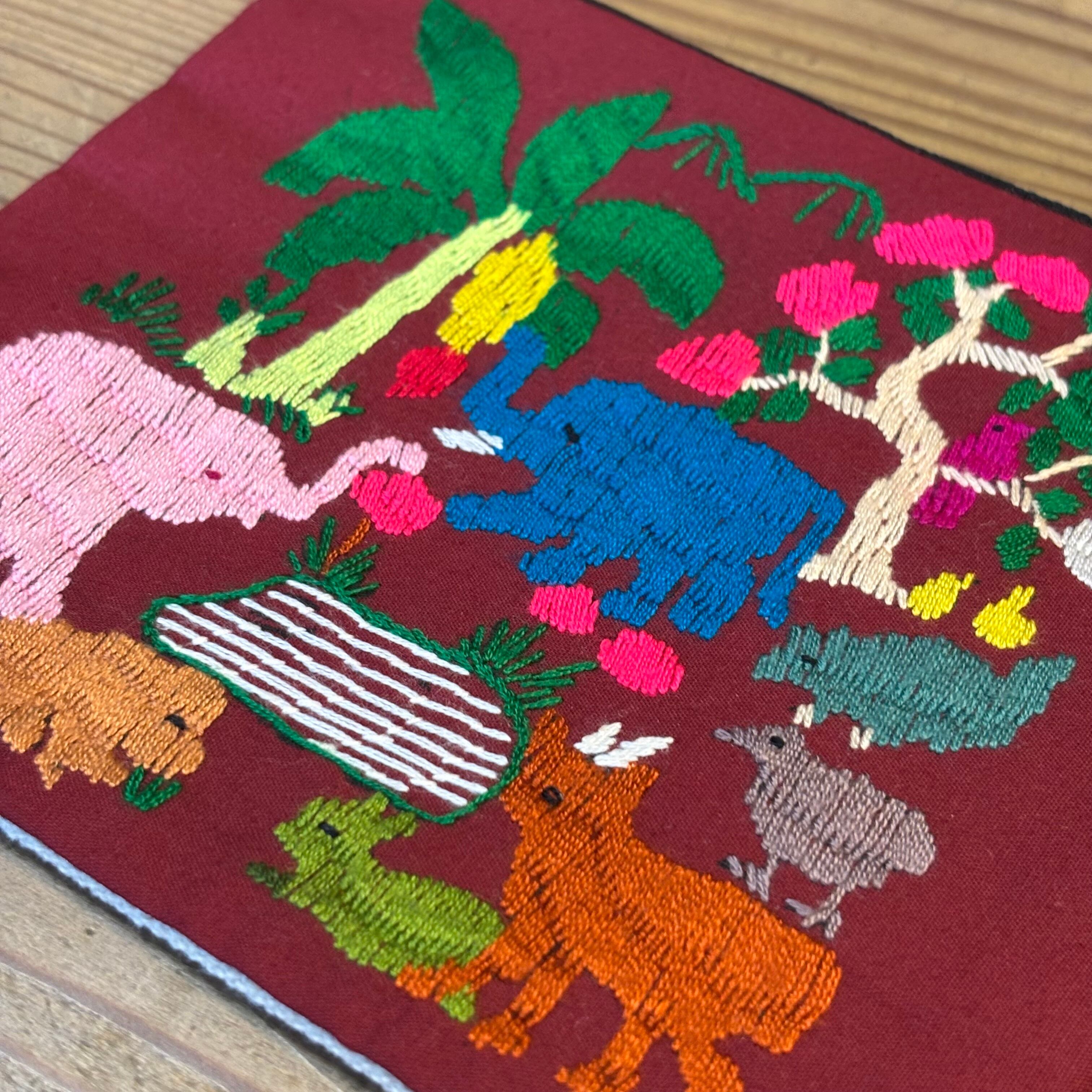 一針一針手で刺された刺繍は、整いすぎない線や色使いが魅力で、見るほどに味わいが増していきます。