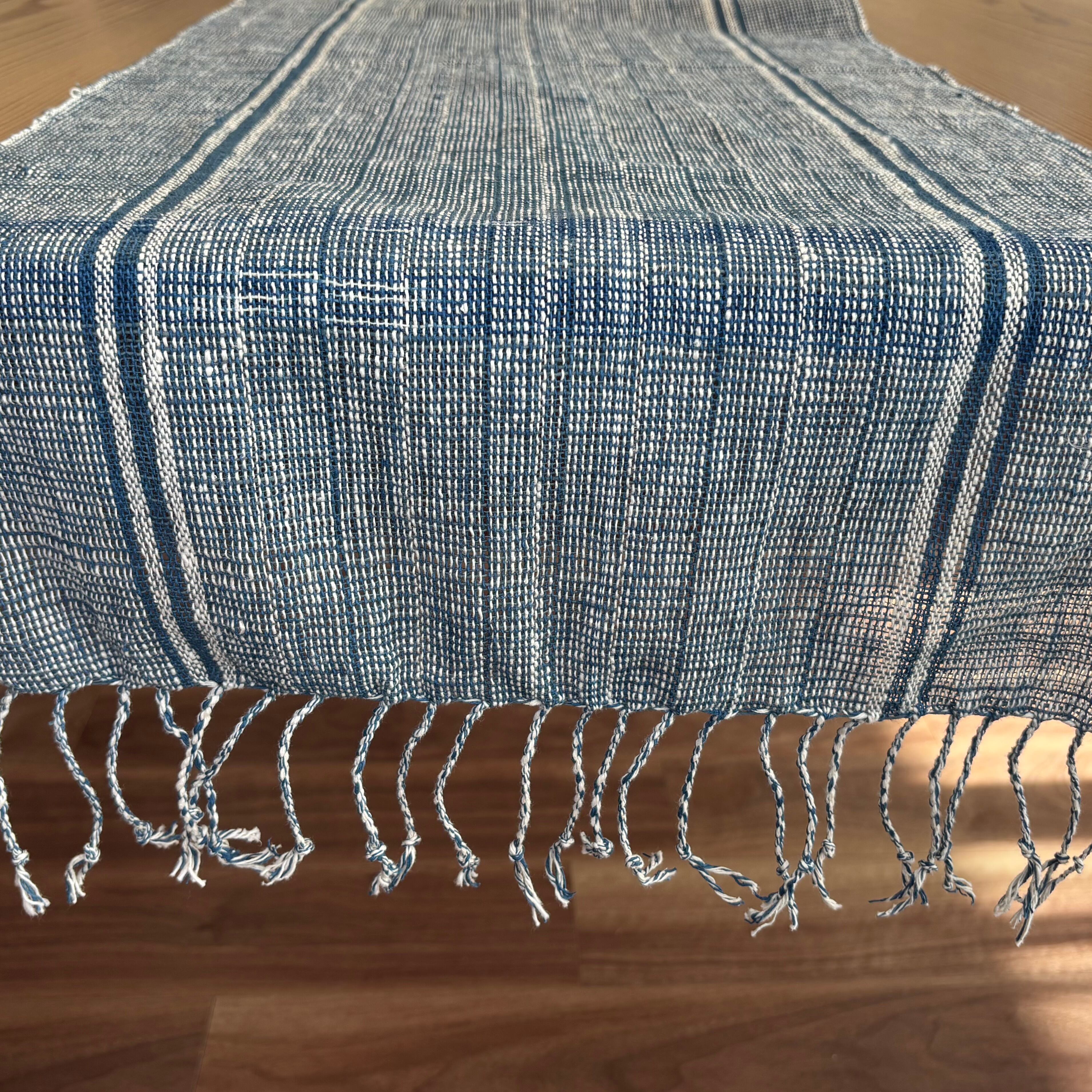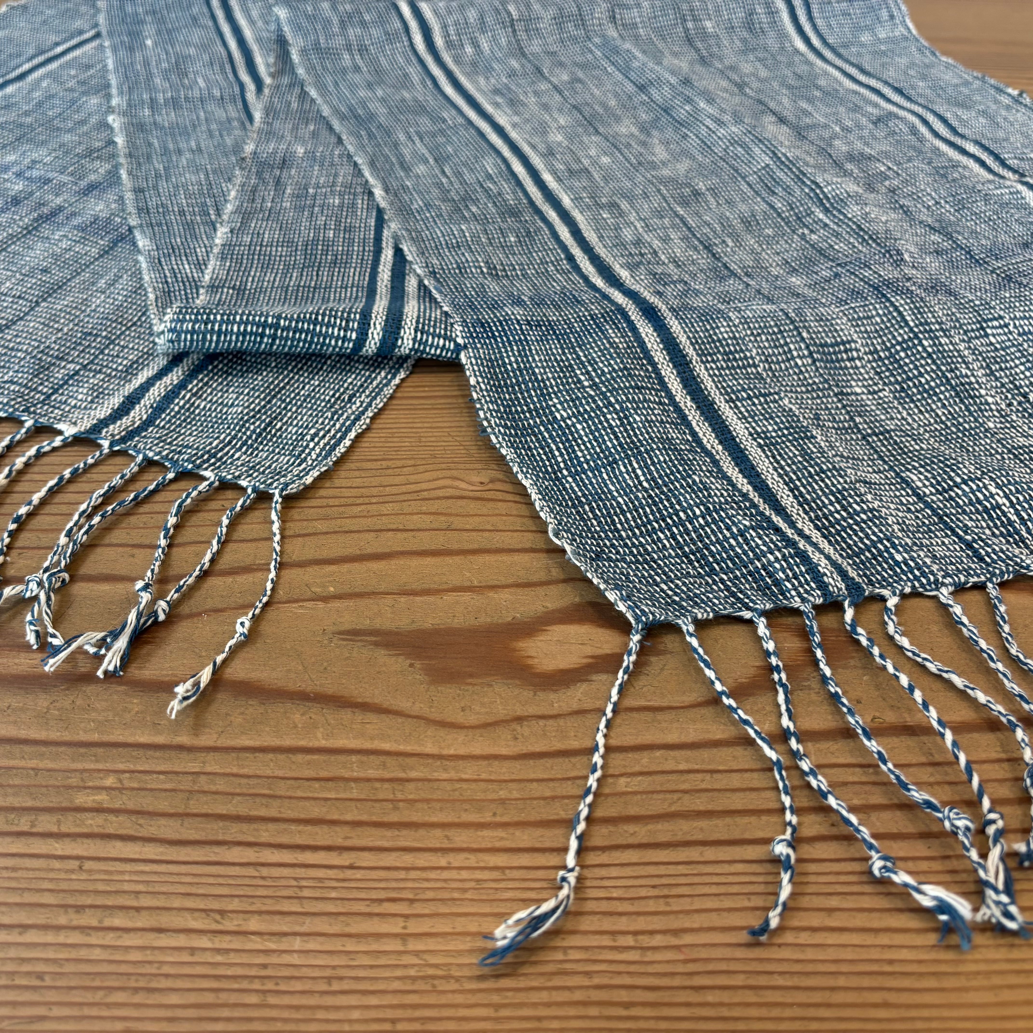 テーブルランナーとしてはもちろん、スカーフとして身に着けたり、棚やチェストに敷いたり、壁に掛けて布そのものを楽しんだりと、幅広くお使いいただけます。