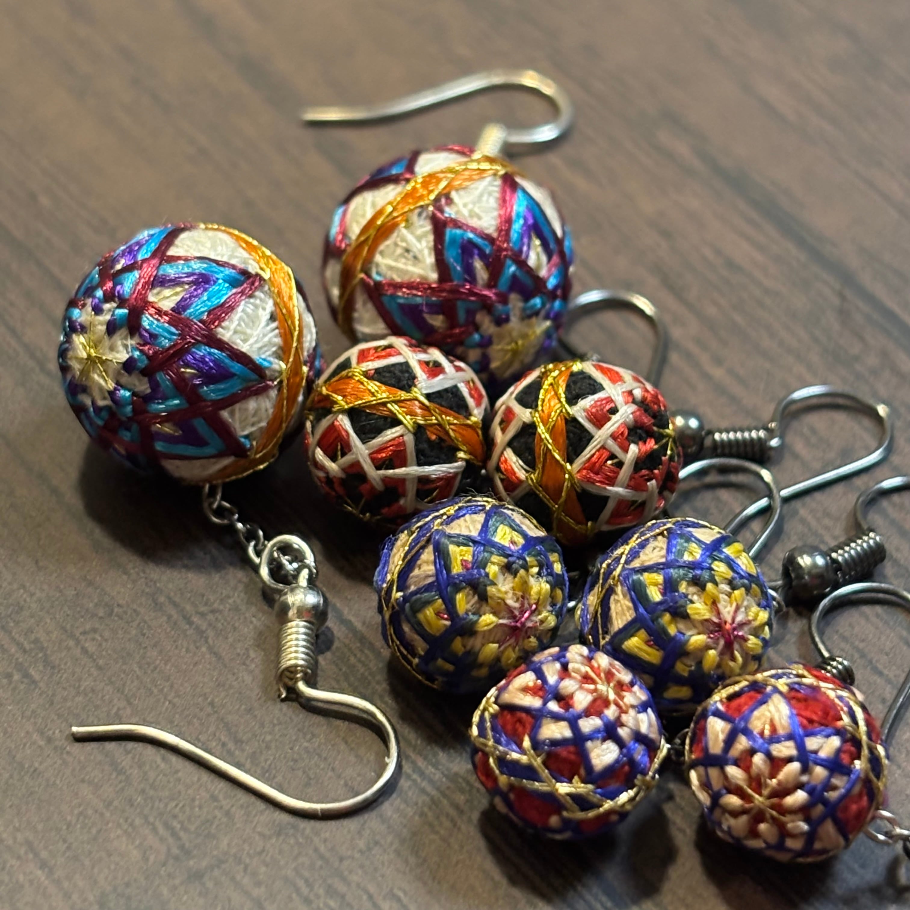 ラオスと日本の伝統が融合した手毬ピアスです。