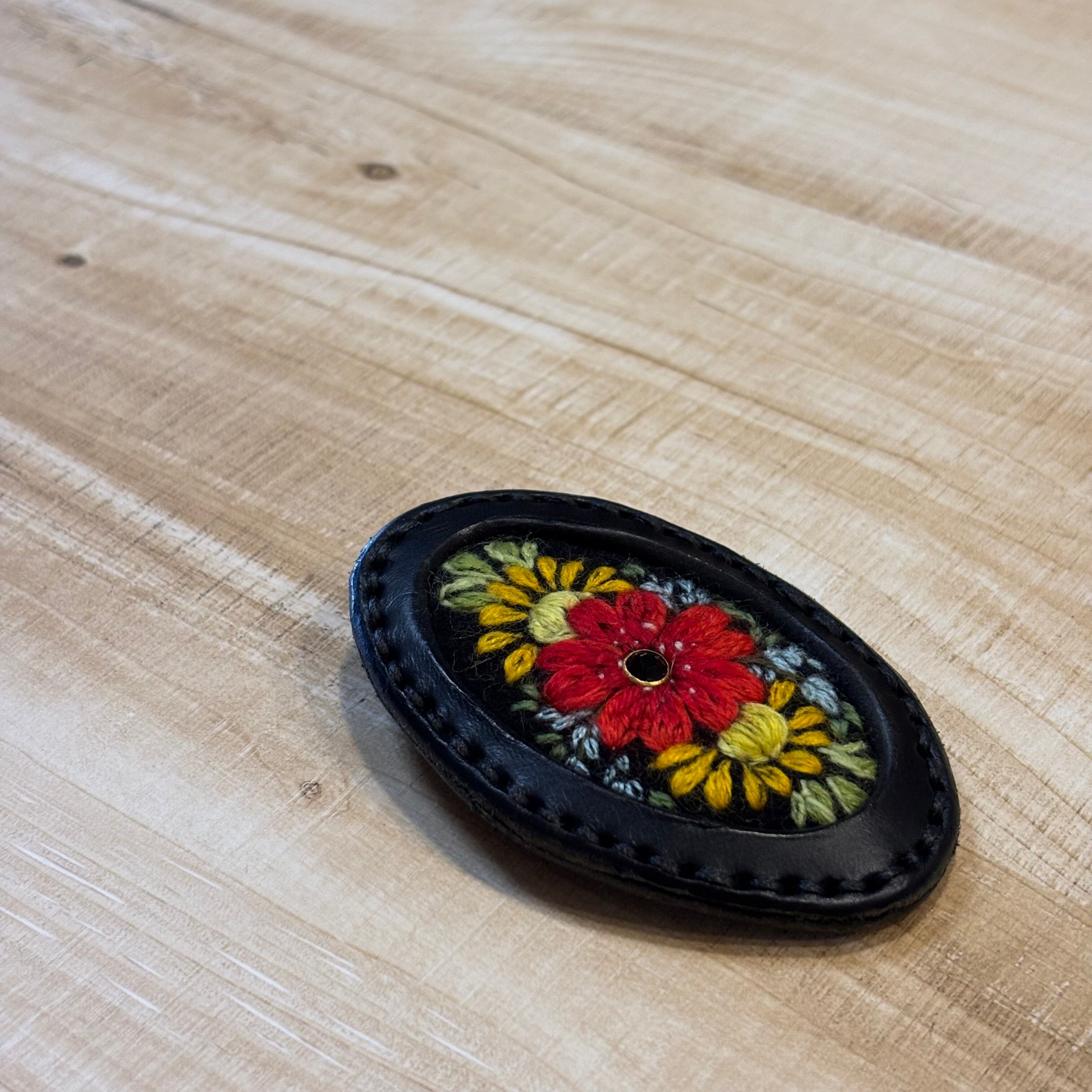ムフ島の伝統的な花柄刺繍をあしらったブローチです。