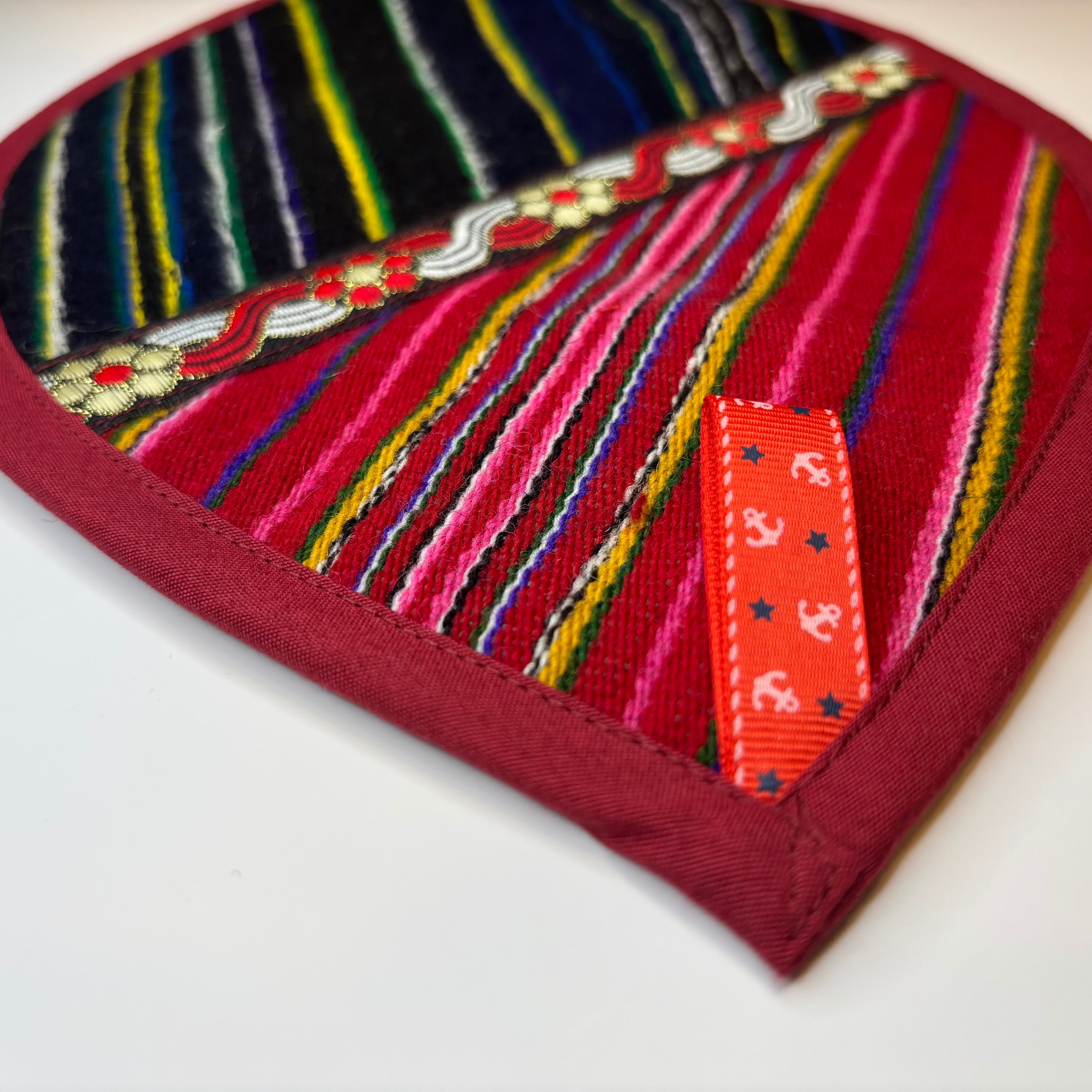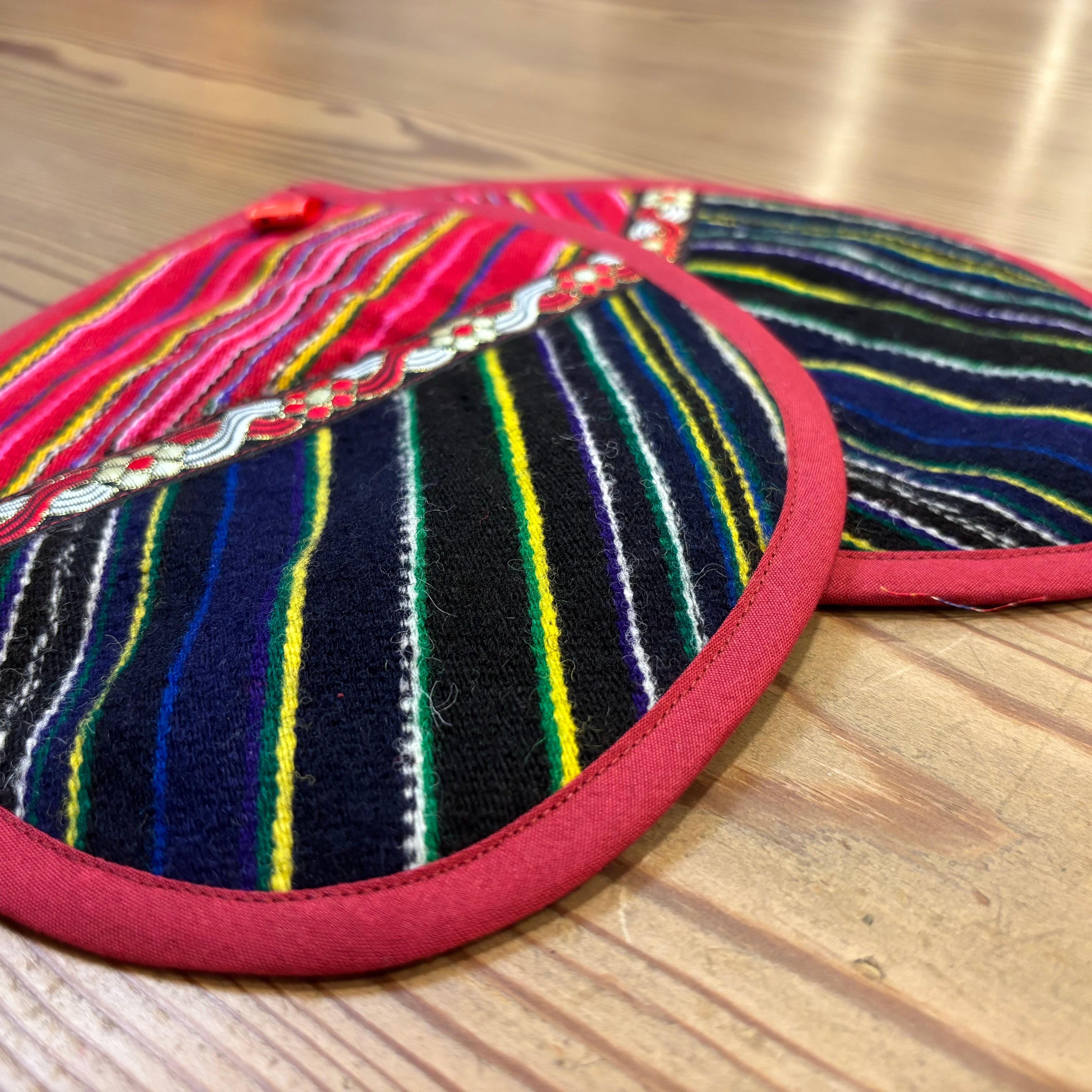 エストニア・キヒヌ島の伝統的なスカートをリメイクして作られた鍋敷きです。