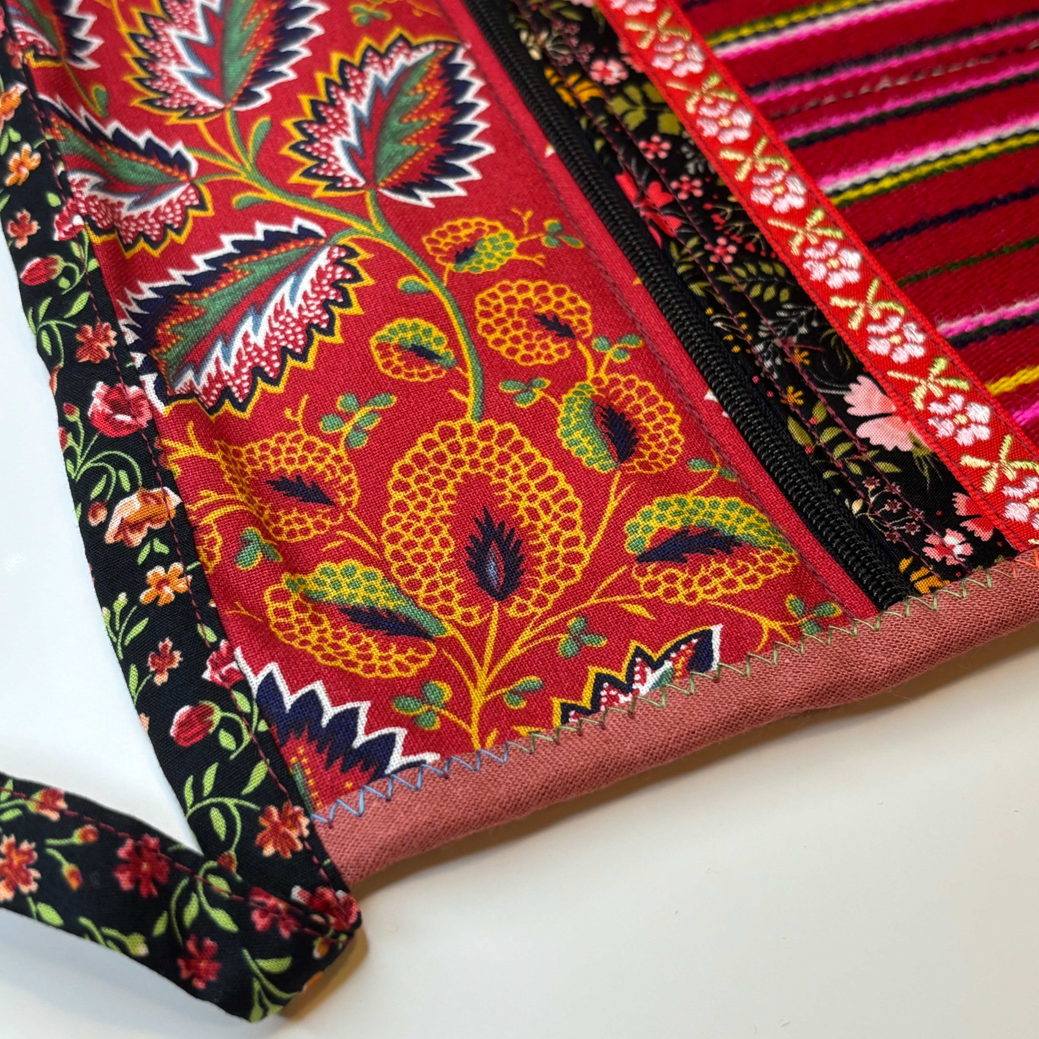 エストニア・キヒヌ島の赤い縞模様の伝統的なスカートをリメイクして作られたポシェットです。