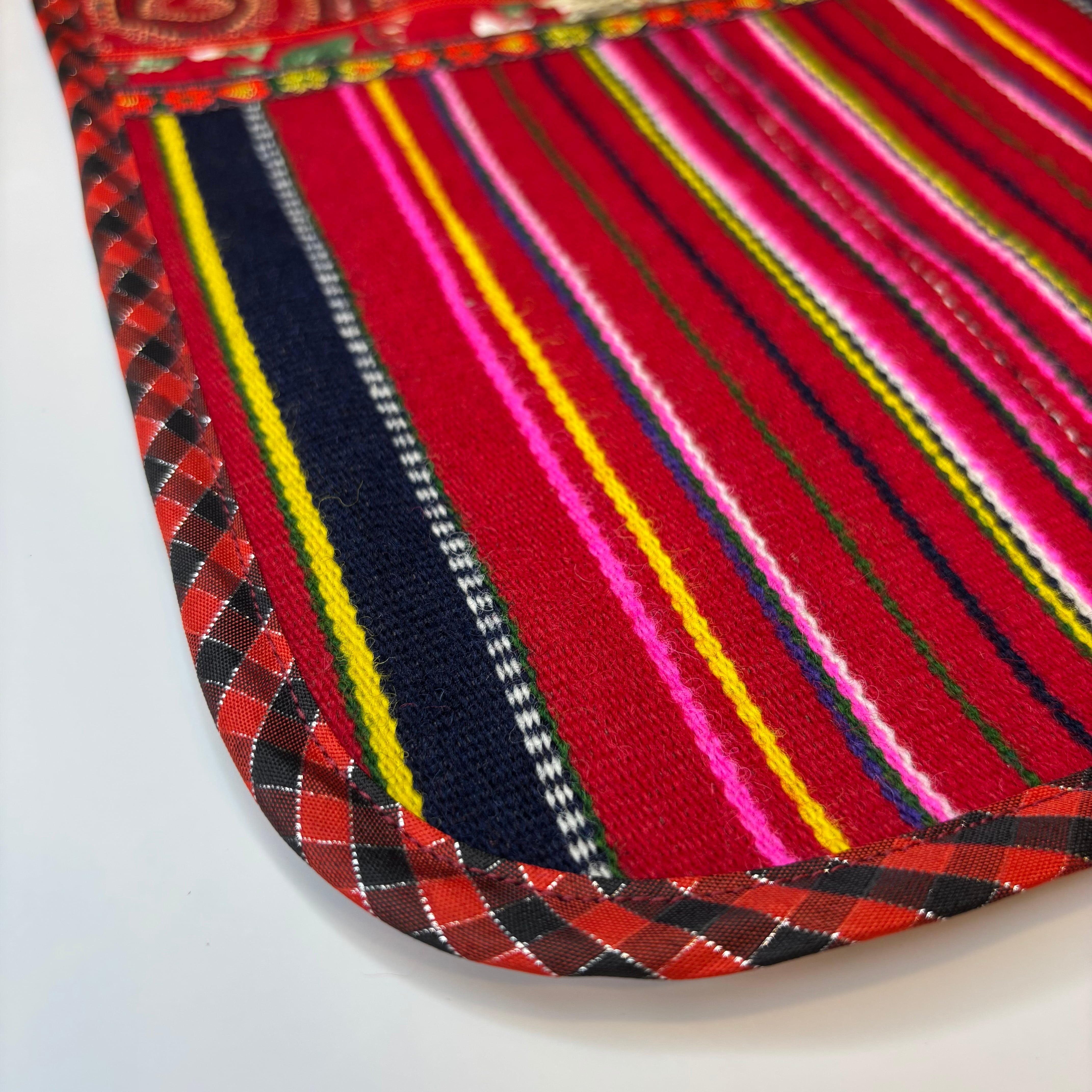 エストニア・キヒヌ島の赤い縞模様の伝統的なスカートをリメイクして作られたポシェットです。