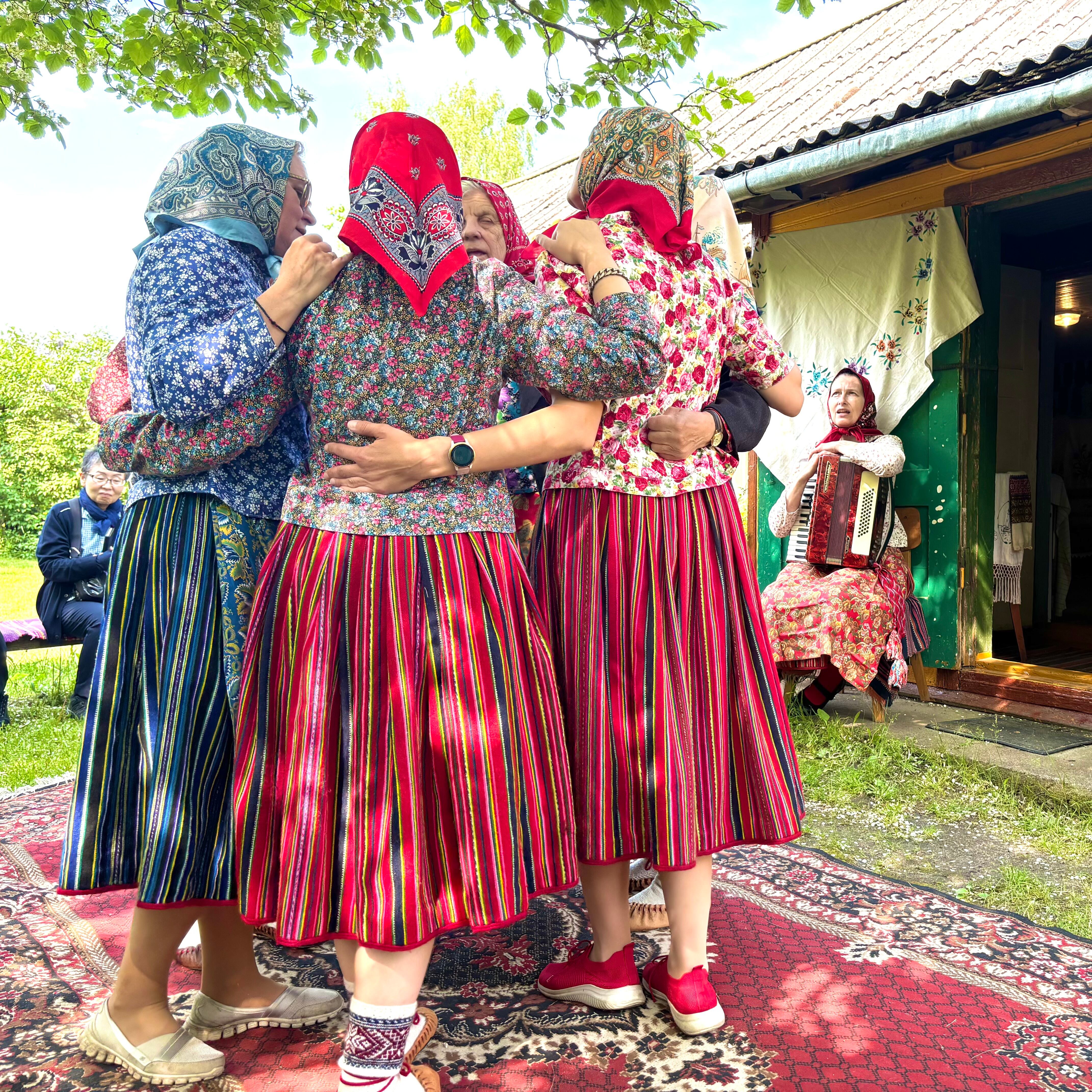 島の女性たちが身にまとうスカートに使われてきた、赤を基調とした縞模様の布は、キヒヌの暮らしや文化を象徴する存在となっています。