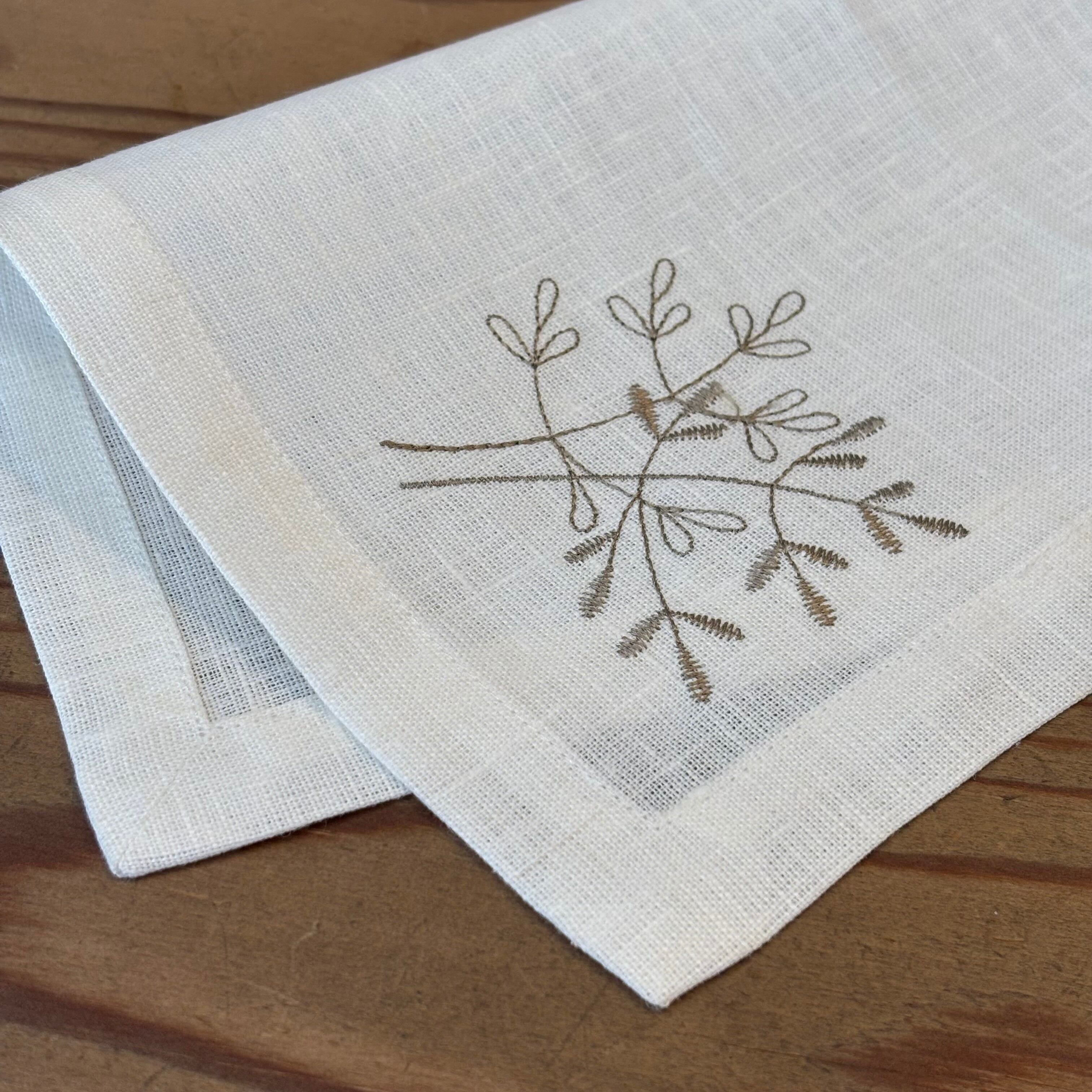 リトアニアで織られたリネンに、植物モチーフの刺繍を施したナプキンです。