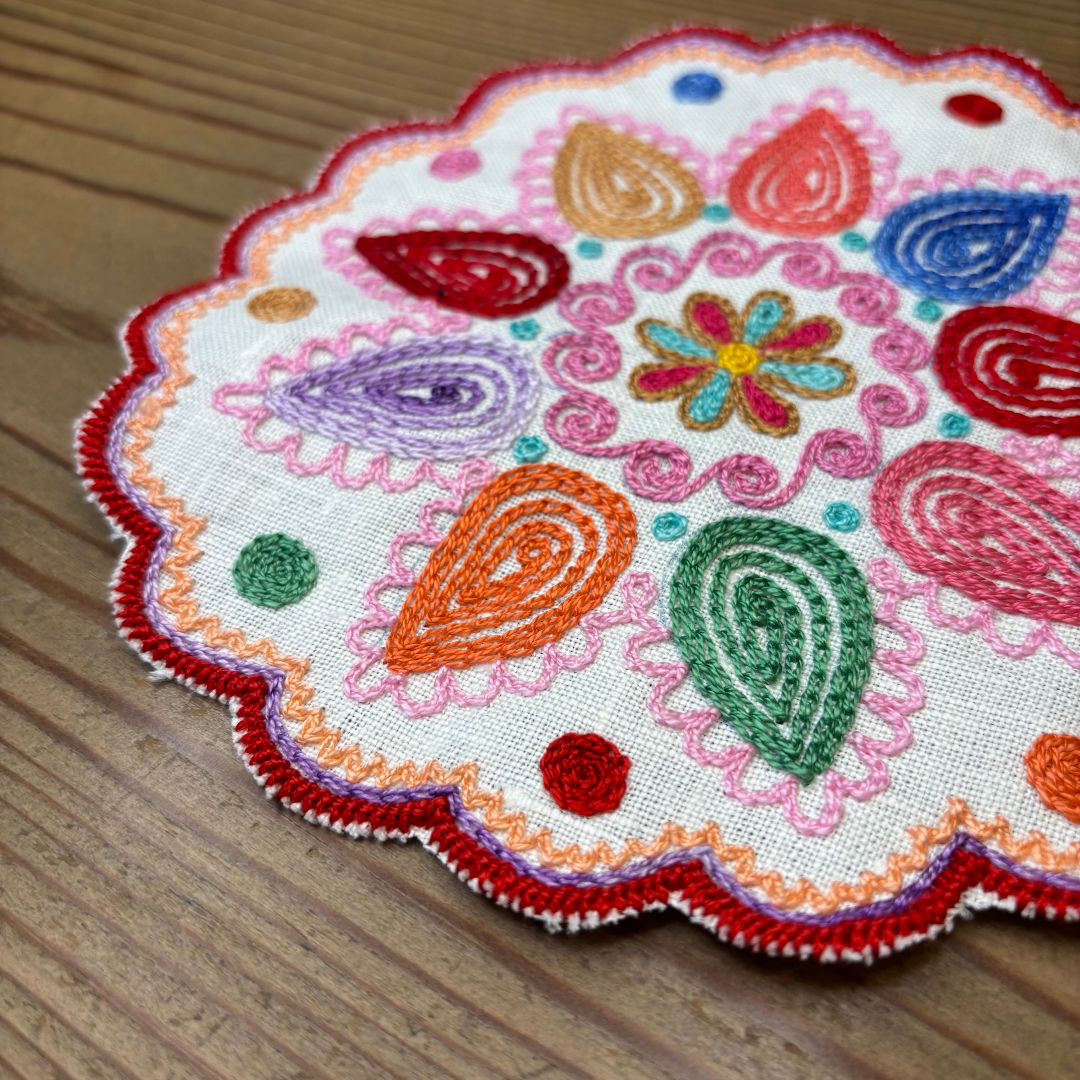 スロバキア中部の町・Detvaの伝統的な刺繍をあしらったドイリーです。