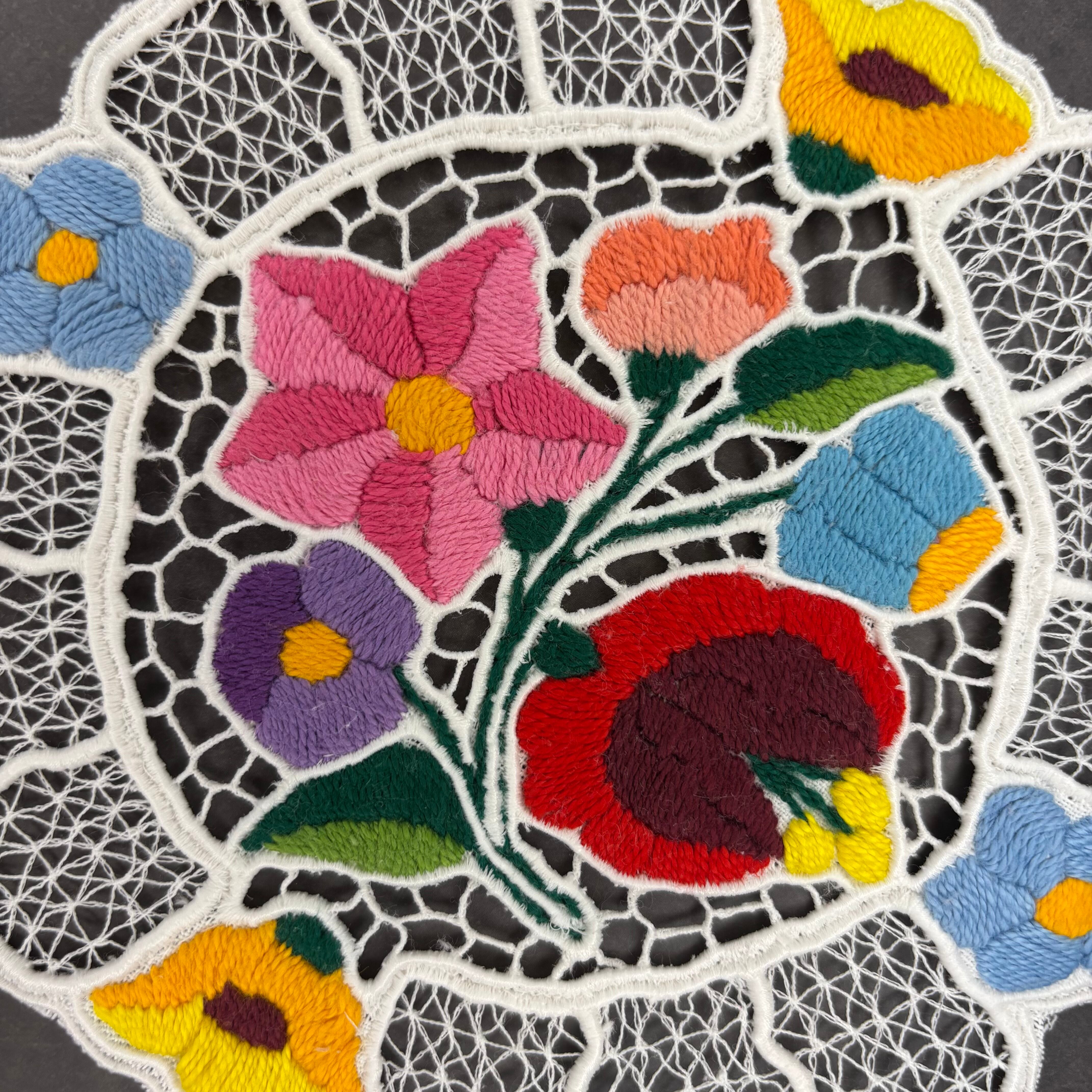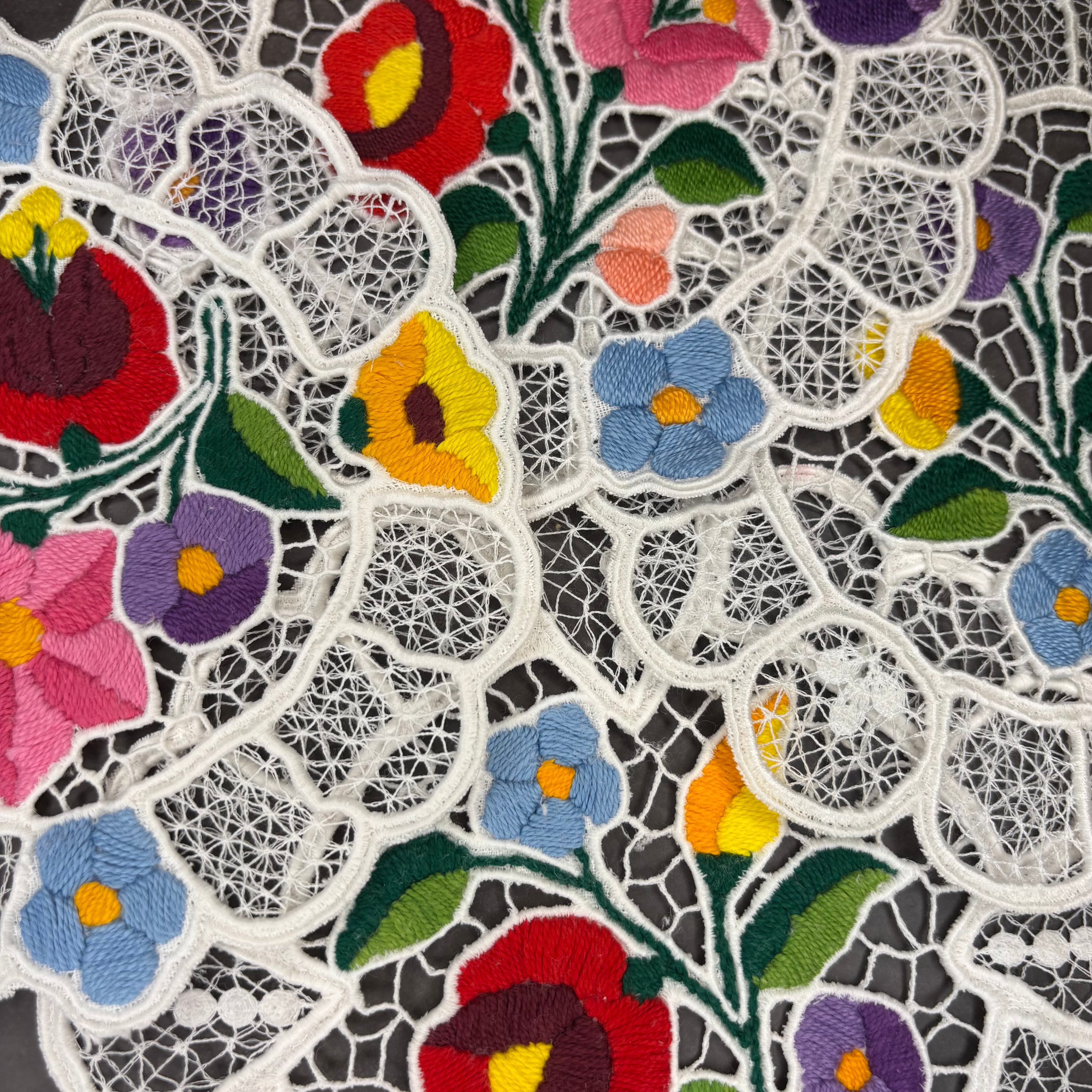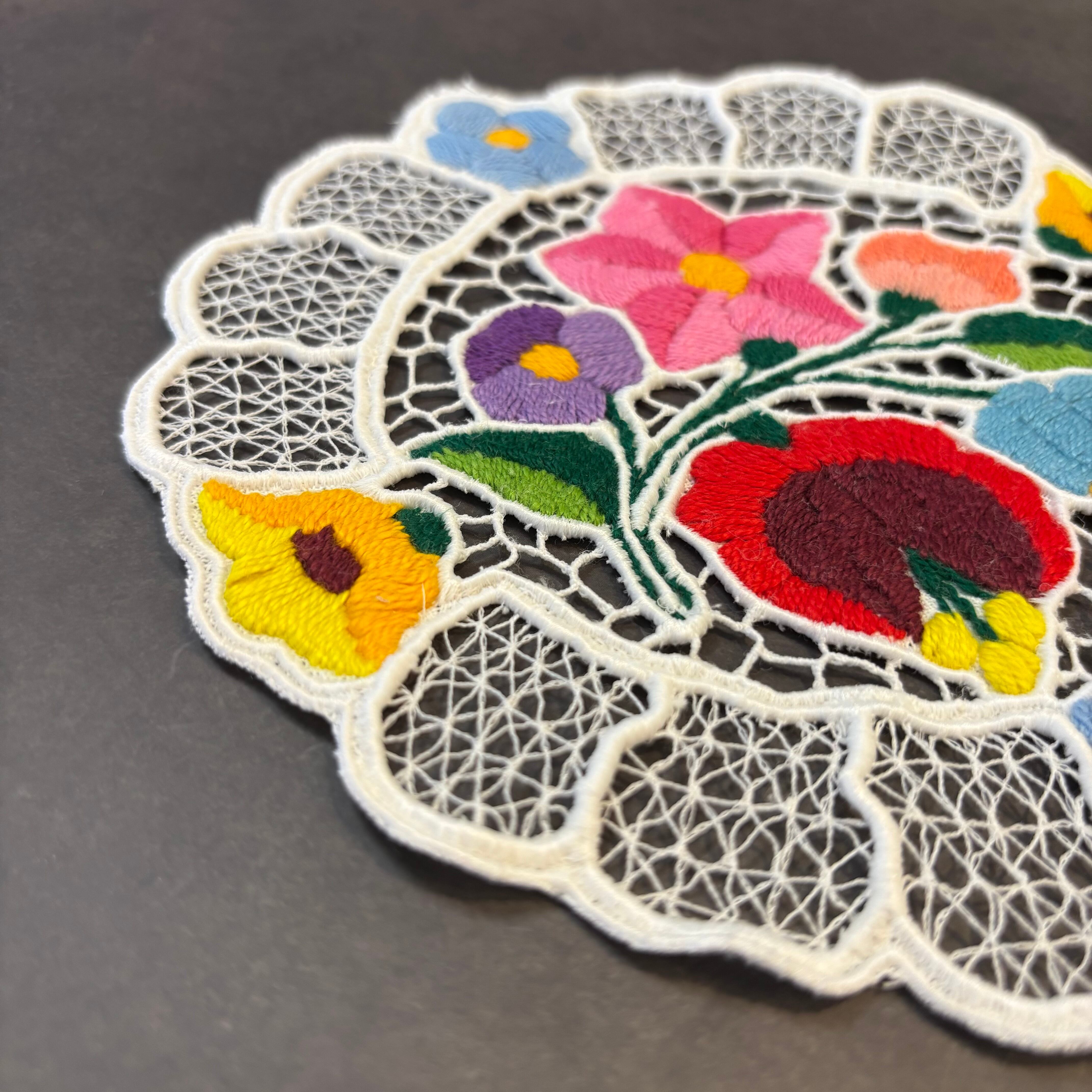 ハンガリー・カロチャ地方に伝わる伝統刺繍を施したドイリーです。