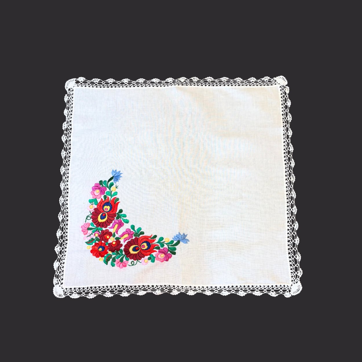 ハンガリー北東部に伝わるマチョー刺繍をあしらったテーブルクロスです。
