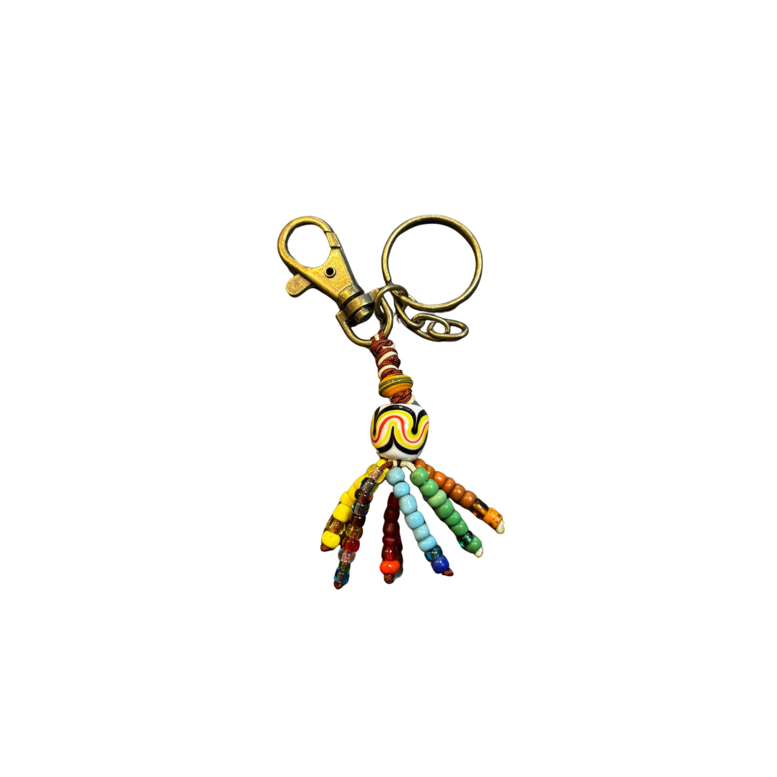 台湾の先住民族のひとつ、パイワン族による蜻蛉玉(とんぼ玉)を用いたキーチャームです。
