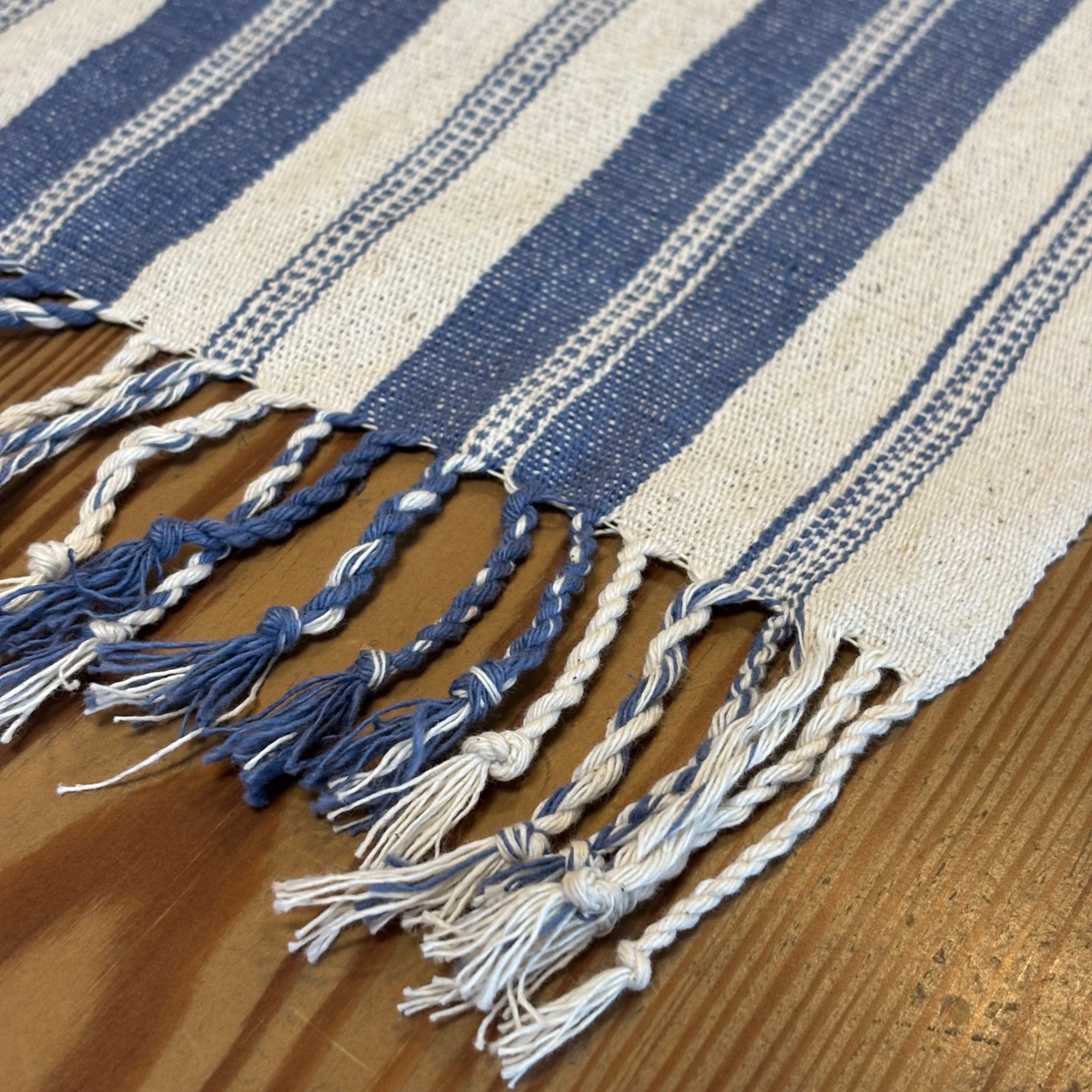 テーブルランナーとしてだけでなく、棚やチェストの上に敷いたり、空間のアクセントとしても楽しめる一枚です。