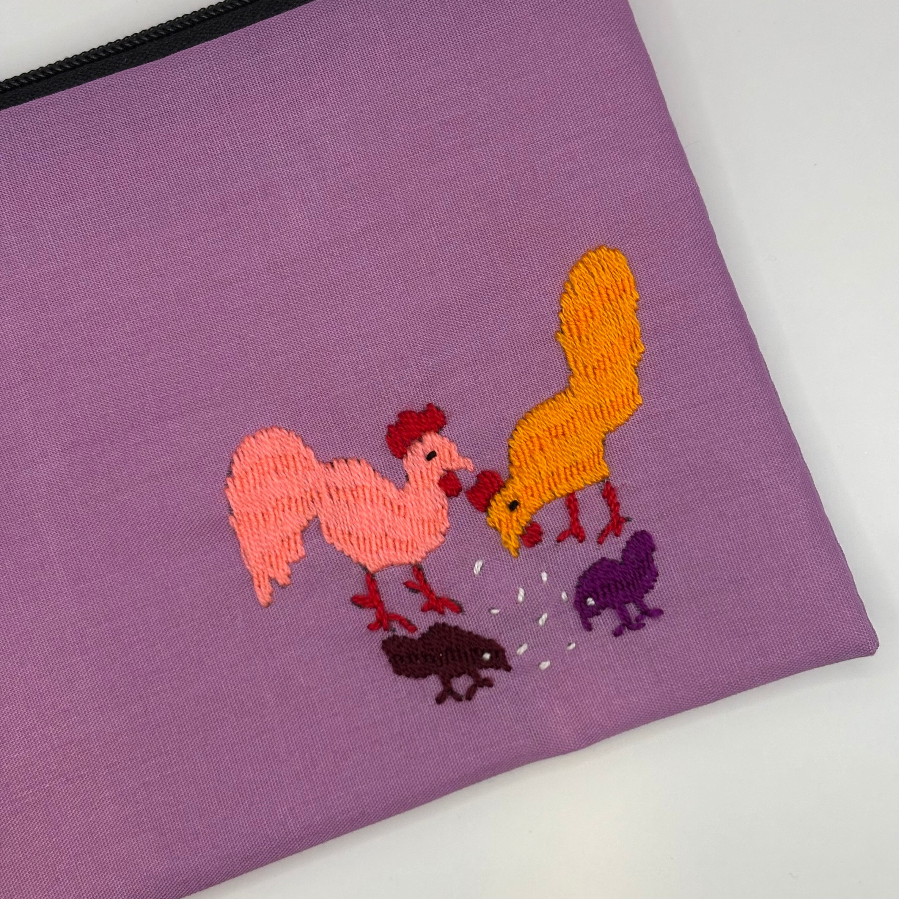 一針一針手で刺された刺繍は、整いすぎない線や大胆な色使いが魅力で、見るほどに味わいが増していきます。